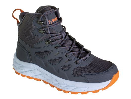 moderni sportski izgled tenisice za slobodno vrijeme ili lagane vrste radove gdje nema opasnosti od ozljeda gornjište : kombinacija tkanina + microfibre gornji dio iznimno otporan na temperaturne promjene srednji dio izrađen od EVA materijala kako bi se osigurala mala težina i fleksibilnost donji dio đona čini gumeni sloj kako bi se osigurala stabilnost i protuklizna svojstva visoki đon za komfor i stabilnost stopala dvostruka potpora za petu radi stabilnosti zglobova i koljena REGULAR FIT mekani obloženi spužvasti dio u području zgloba i jezika tamno sive vezice sa detaljima narandžaste crna podstava unutrašnjosti cipele