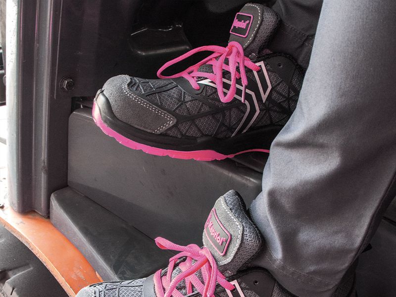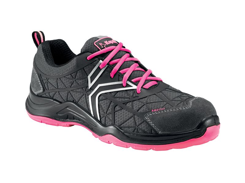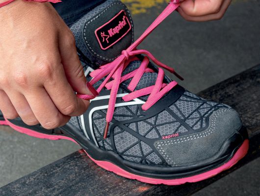 EN ISO20345:2022 S1 PL SR FO čvrste, prozračne ženske radne cipele s visoko fleksibilnim uloškom otpornim na probijanje i prozračnom unutarnjom podstavom za laganu udobnost gornjište: mreža - KPU potplat: poliuretan ojačanja od brušene kože na prednjem dijelu i peti zaštita prstiju: čelik prozračna unutarnja podstava poliuretanski potplat visokog prianjanja s fleksibilnim i laganim PU međupotplatom podstavljeni rub i jezik