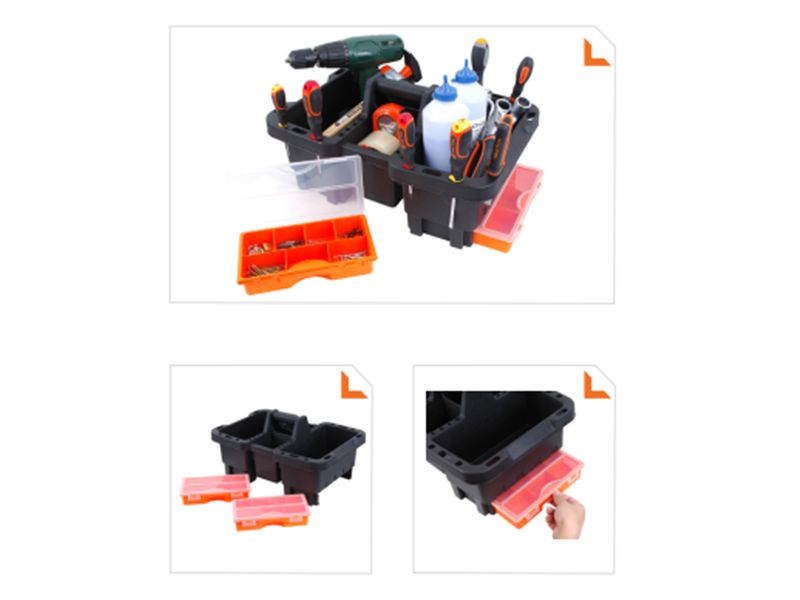 dimenzije 50x35x25 cm2 velika odjeljka , 2 manja odjeljka2 ladice sa mogucnošcu izvlacenja ( za sitne alate i vijcanu robu )