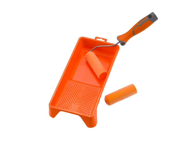 idealno za brzo bojenje DIY (do-it-yourself) set 3/1 sastoji se od : - ručka progrip kratka 10 cm - dva valjka spužvasta 10 cm - posuda za boju 15x31 cm