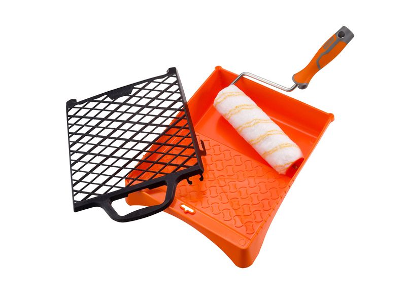 profi set za ličioce 4/1 sastoji se od : - ručke progrip 23 cm - valjak polimid 23 cm ( za unutarnje glatke zidove ) - posude za boju 29x45 cm - plastična mrežica za boju 27x31 cm