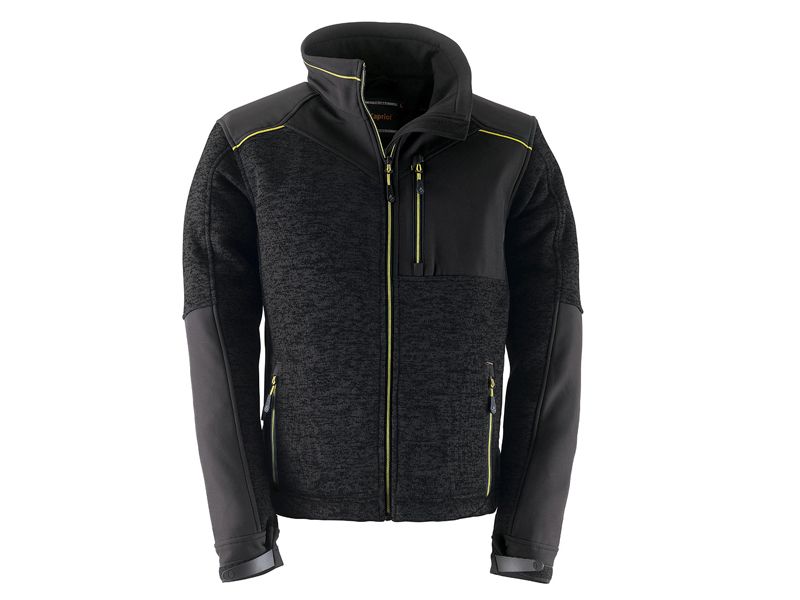 100 % poliester melange fleece 225 g/m2 Kapriol RECYCLED FABRIC softshell: 94 % poliester - 6 % elastan K-STRETCH, iznimno udobna i topla jakna zaštita od vjetra i hladnoće okomito postavljeni džep u visini grudi bočni okomiti džepovi na rukama i dnu jakne postoji mogućnost stezanja, kako bi se smanjio ulazak hladnog zraka reflektirajući umetci