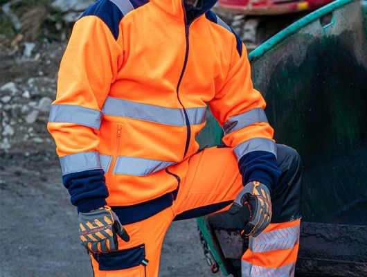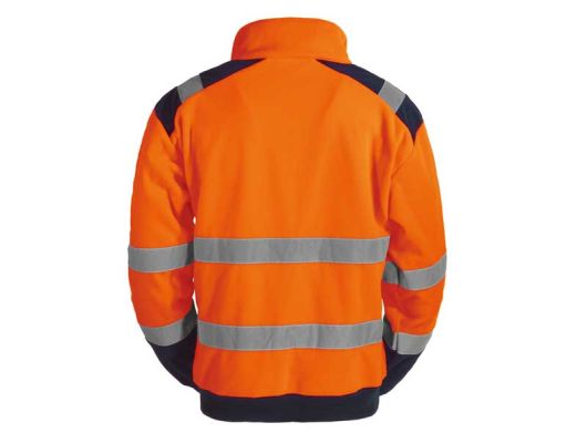 EN ISO 20471:2013 + A1:2016 visoka vidljivost glavna tkanina:100 % poliester fleece 300 g/m2 regular fit COLD PROOF - zaštita od hladnoće i vjetra udobna i izdržljiva, reflektirajuća radna fleece jakna tkanina otporna na kidanje i trošenje (wearproof) džepovi sa patentom elastični dio u struku i na dnu rukava HV trake 5 cm