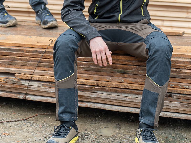 dinamične radne hlače sa posebnim džepovima za alat na obje noge i praktičnim elastičnim manžetama na gležnjevima s gumiranim donjim dijelom glavna tkanina: 54% najlon / 39% poliester / 7% elastan 215g/m2 pojačanja: 98% poliester / 2% elastin 190 g/m2 pretinci za alat džep za štitnike za koljena s ulazom na vrhu stražnji džepovi s čičkom, pojačanjem i obrubom praktični džep za telefon i metar s plutajućim dnom water repellent obrada tkanine SLIM FIT trostruki šav elastična s gumiranim dnom elastični pojas za bolje pristajanje