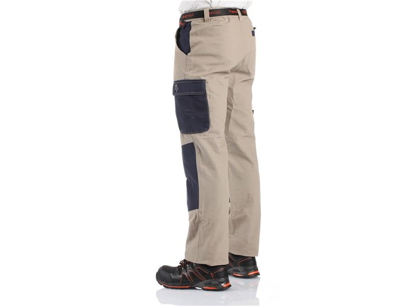 Hlače Tenere su idealne za sve radne uvjete uz visoku razinu praktičnosti i udobnosti regular fit 100 % pamuk Canvas 290 gr/m2 elastični dio u struku za povećani komfor i prilagođavanje tijelu remen Kapriol stražnji džep dva velika džepa u području struka posebni džep na desnoj strani iznad koljena veliki džep na preklop na lijevoj strani iznad koljenja ojačanja na koljenima