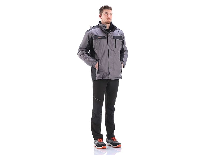 zimska jakna SMART , EN 14058zaštita od hladnoce , vjetra i kišeglavna tkanina 100 % poliester Ponge Ripstop PVC sloj 250-260 WP 3000 mmzavršna obrada : Hard Feeling Water repellentispuna : mekano punjenje 100 % poliesterpodstava : 100 % poliester Taffeta 60 g/m2kapuljaca sa prednjom elasticnom trakom za podešavanje širinepodstava ovratnika micro fleecena svim patentima dodatak za lakše zatvaranje u slucaju korištenja rukavicareflektirajuce crteveliki broj komfornih džepovavelicine od M do XXXL