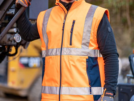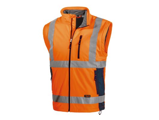 EN ISO 20471:2013 + A1:2016 visoka vidljivost jakna 2 u 1 : softshell jakna + softshell prsluk mogućnost skidanja rukava i onda se koristi samo radni HV prsluk glavna tkanina:100 % poliester softshell 290 g/m2 regular fit COLD PROOF , WIND PROOF - zaštita od hladnoće, vjetra i kiše udobna i izdržljiva, reflektirajuća radna softshell jakna ili softshell prsluk tkanina otporna na kidanje i trošenje (wearproof) džepovi sa patentom u struku okomiti džep sa patentom visoko na grudima HV trake 5 cm