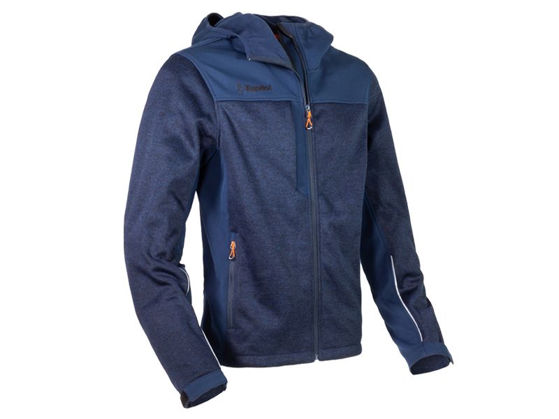 zaštita od vjetra i hladnoće završna obrada water repellent štiti od prodora vode iznimno udobna i mekana jakna za maksimalnu slobodu pokreta tkanina: 100 % poliester fleece laminated 360 g/m2 softshell 3: 96 % poliester 4 % elastan podesiva kapuljača sa elastičnom trakom veliki skriveni džep na patent visoko postavljen za mobitel i slične predmete dva kosa džepa sa strana sa patentom reflektirajuće trakice na rukavima za pojačanu vidljivost trake na čičak na dnu rukava za smanjeni ulazak hladnog zraka veličine od M do XXXL