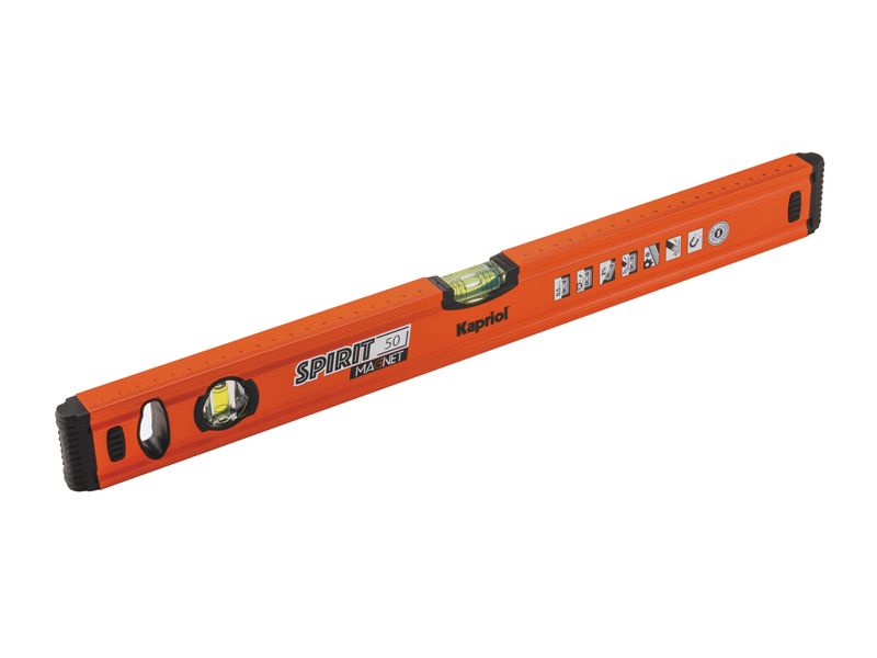 profesionalna libela SPIRIT konstrukcija obojana epoksidnim prahom okvir od rebrastog aluminija magnetska baza za lakšu upotrebu brušena mjerna površina plastični odbojni poklopci akrilne libele otporne na udarce i UV zračenje točnost 0,75 mm/m=0,043°