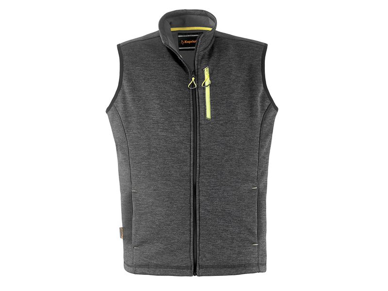 prsluk SLICKboja: crna melangemoderni funkcionalni prsluk za razne aktivnosti na otvorenomrubovi prsluka sa elasticnom trakomudobni bocni džepovidžep sa patentnim zatvaracem na prsimatopla i udobna tkaninamaterijal: glavna tkanina 100% poliester 260 g/m2iznimno prozracna tkaninavelicine od M do XXL