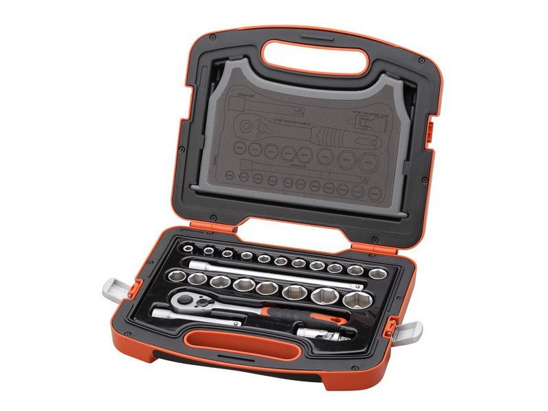 19 kom kljucevi 1/2”: 8,9,10,11,12,13,14,15,16,17,18,19,21,22,23,24,27,30,32mm1 adapter univerzalni 1/2”1 produžetak 1/2” 125mm1 produžetak 250mm 1/2”1 kljuc sa cegrtaljkom 1/2"