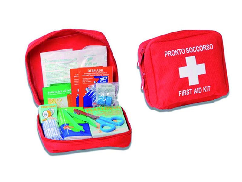 set prve pomoci za manje ozljede preporucuje se za automobile , sport , slobodno vrijeme itd 1 par sterilnih rukavica 1 elasticni zavoj 6 cm * 4 m 2 x 5 ml tekuci sapun 3 alkoholne maramice 1 škare za rezanje zavoja 1 kliješta medicinska 1 rola trake za ljepljenje 1 paket od 10 raznih dimenzija flastera 1 stezac